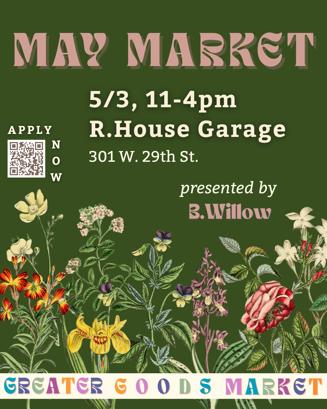 May 3rd (11-4PM)- May market at R.House. click here to apply til 3/29/26)